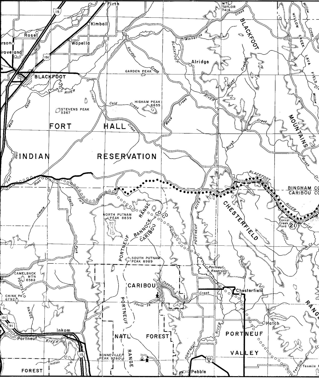 - Lander Road from Wyoming border to Blackfoot River